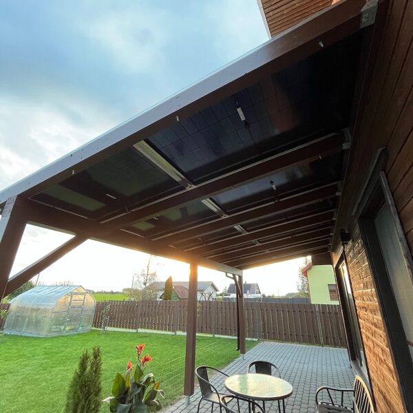NAUDOJAMA SOLIPORT SAULĖS MODULIŲ SANDARINIMO SISTEMA, PAVERČIANTI JUOS STOGU BE PAPILDOMOS STOGO DANGOS